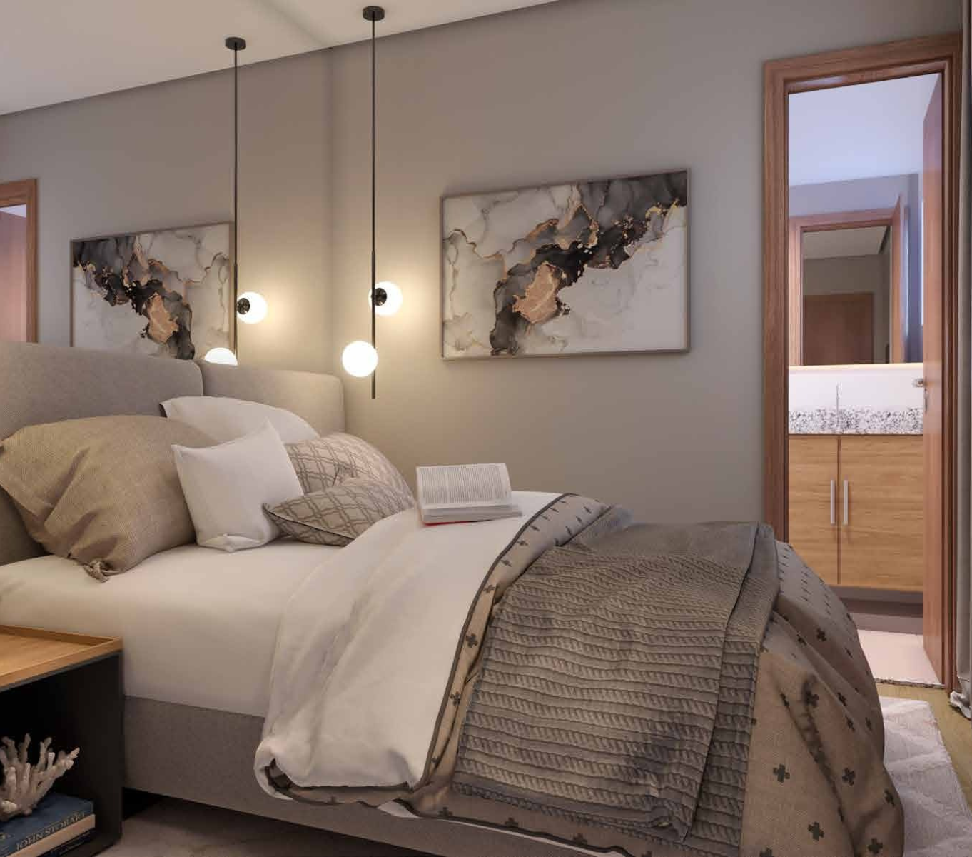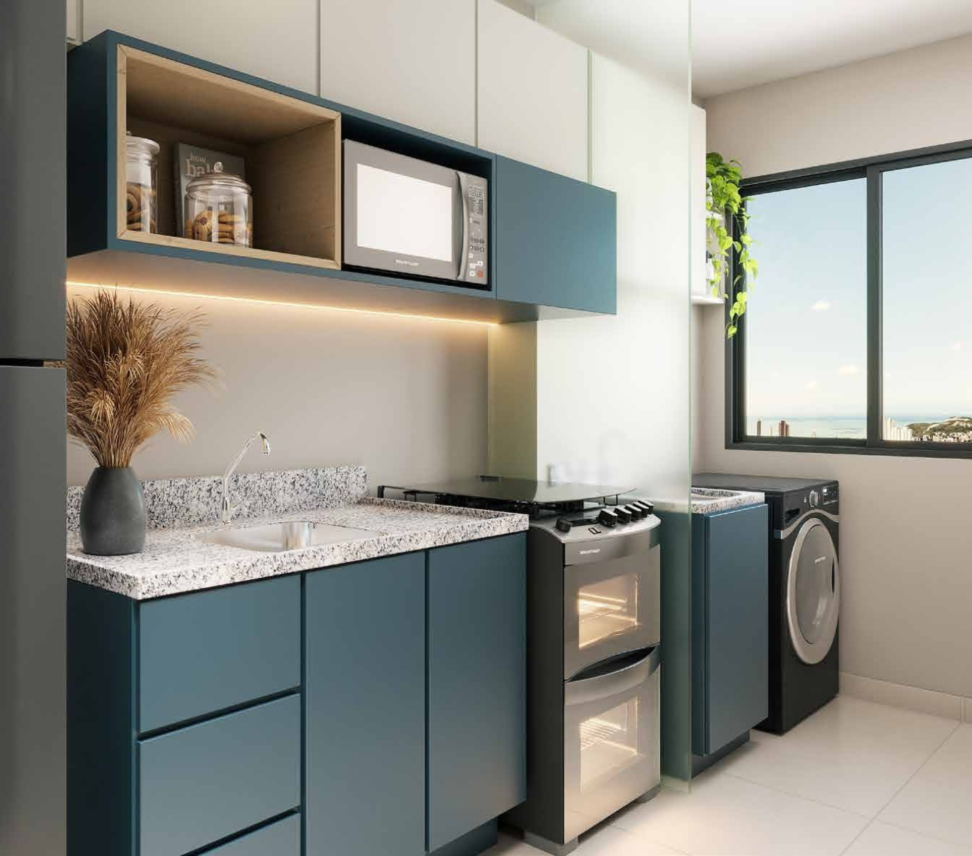 - Bancadas em mármore sintético no banheiro