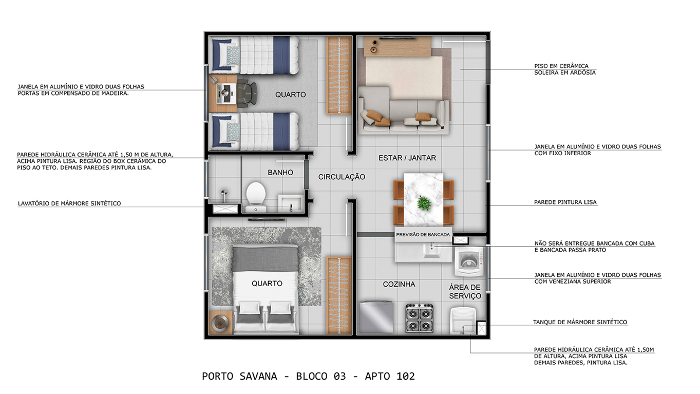 Mais que um apartamento, o novo jeito MRV de viver. O Condomínio Residencial Porto Savana oferece: lazer equipado, coleta seletiva, sistema de segurança, portas especiais, laminado na sala e quartos e muito mais.