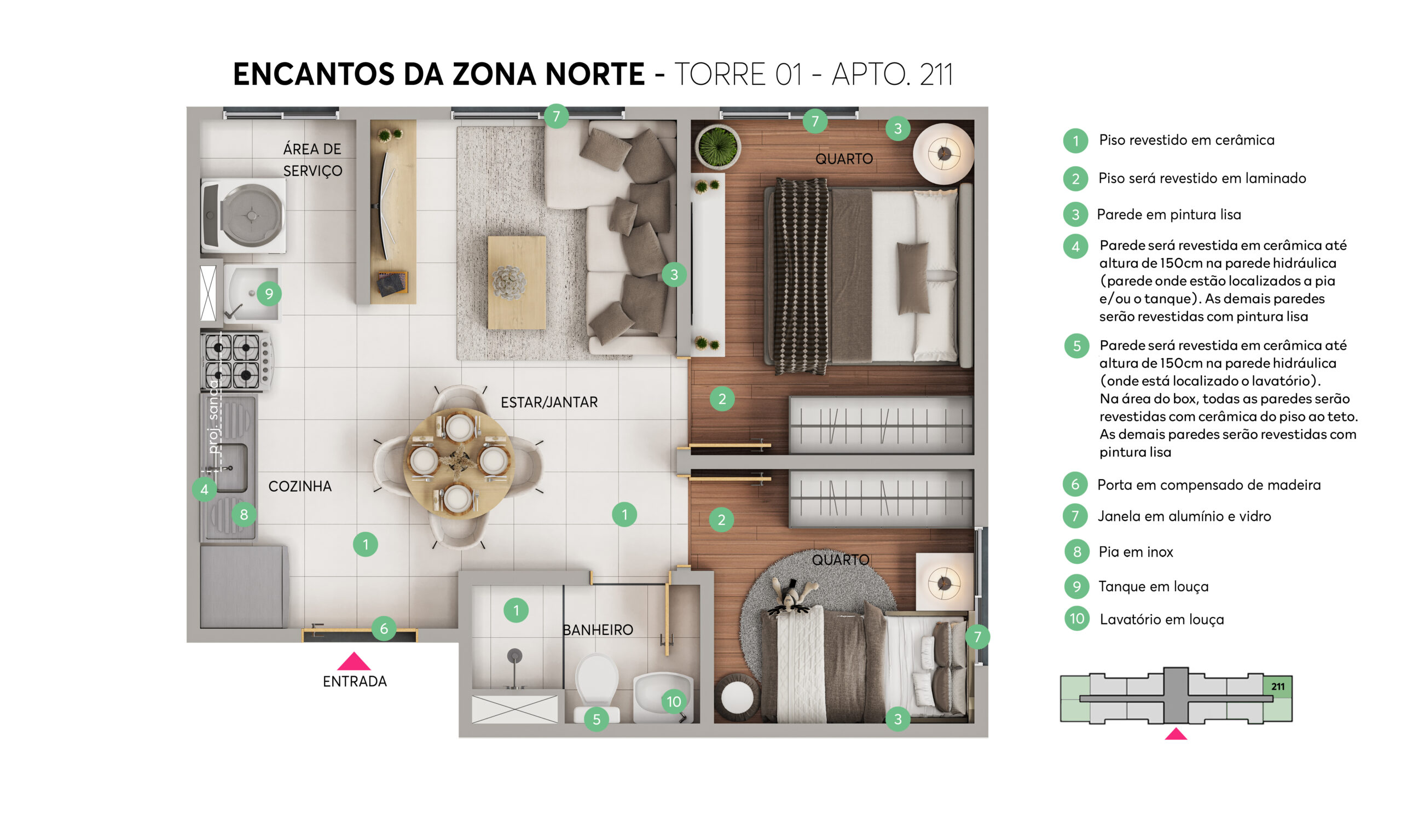 O Encantos da Zona Norte é o encontro perfeito entre ótima localização, lazer completo e segurança. Mas este empreendimento vai além e se mostra uma grande oportunidade para sair do aluguel e mudar de vida. Um condomínio fechado com apartamentos de 2 quartos, opções de varanda ou área privativa, além de uma área de lazer completa com piscinas, churrasqueira, miniquadra, playground, bicicletário e pista de caminhada para elevar sua qualidade de vida.
