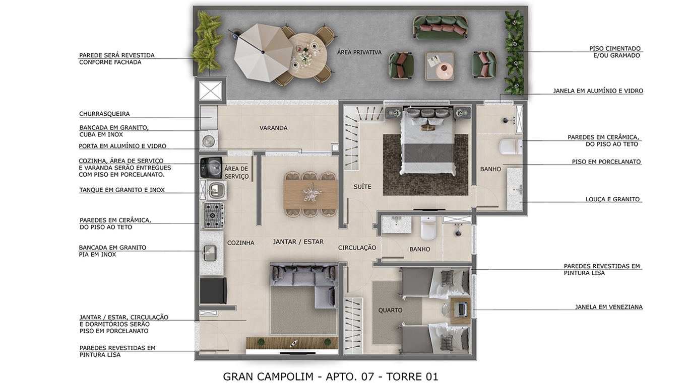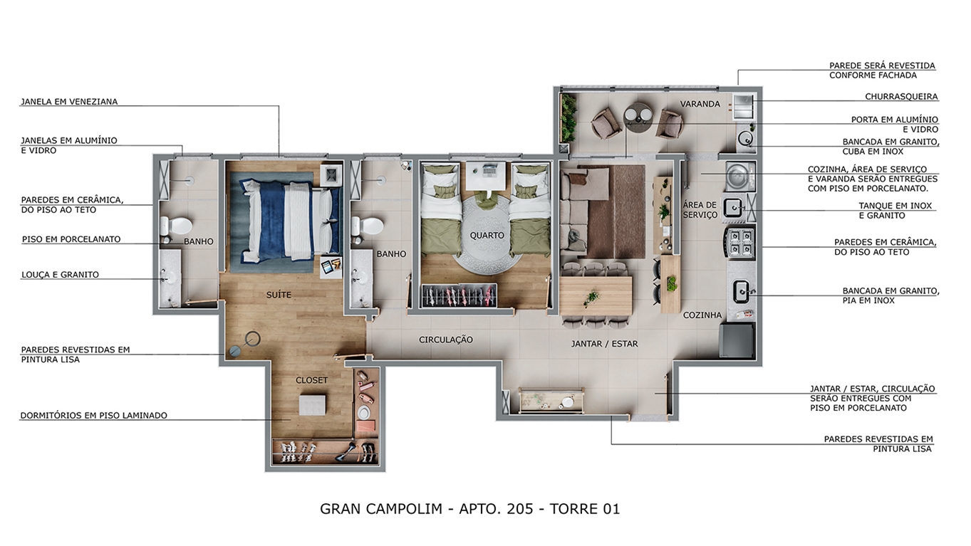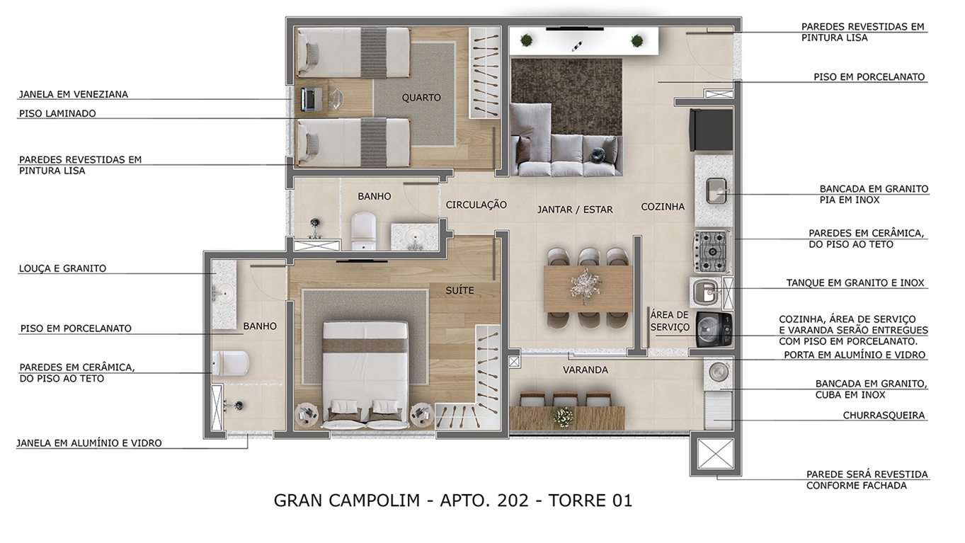 Os apartamentos em Sorocaba estão em excelente localização em um condomínio fechado com todo o conforto, tranquilidade, segurança. o Gran Campolim vai te surpreender com apartamento de 2 dormitórios com suíte e varanda, que possuem ambientes integrados. O lazer vai te proporcionar experiências em família e momentos para celebrar com amigos, com área de lazer para toda a família incluindo mini quadra, salão de festas, espaço de gourmet e muito mais.