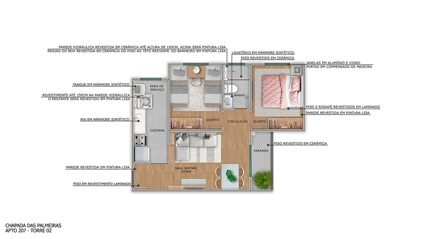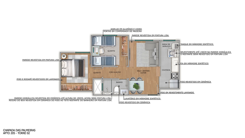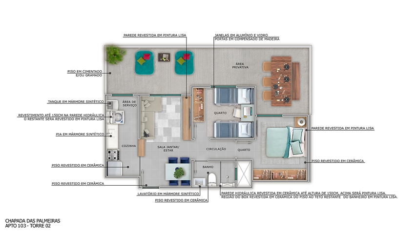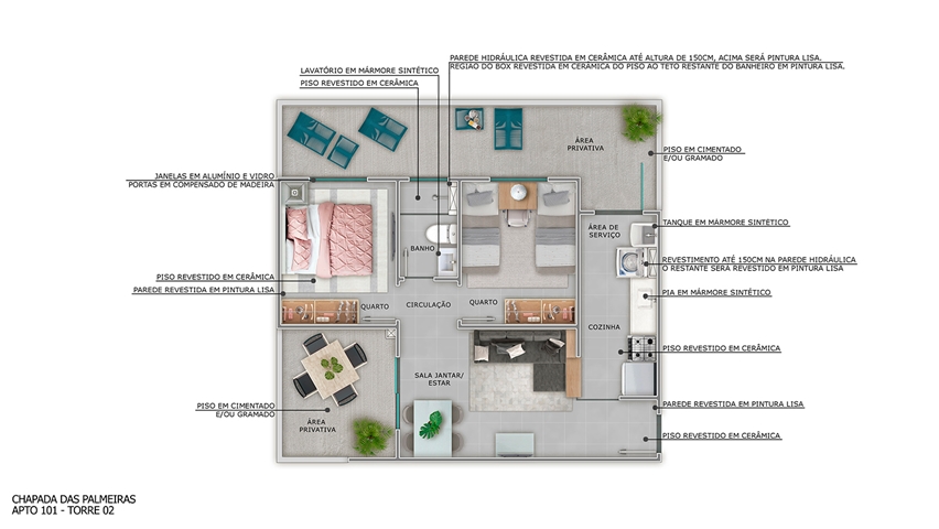 Com apartamentos arejados de 2 quartos e varanda, a Chapada das Palmeiras é o primeiro empreendimento de torres na região e conta com uma área de lazer equipada com piscinas, para você fugir do calor e viver com leveza, e playground, salão de festas e espaço gourmet para você cultivar boas memorias.