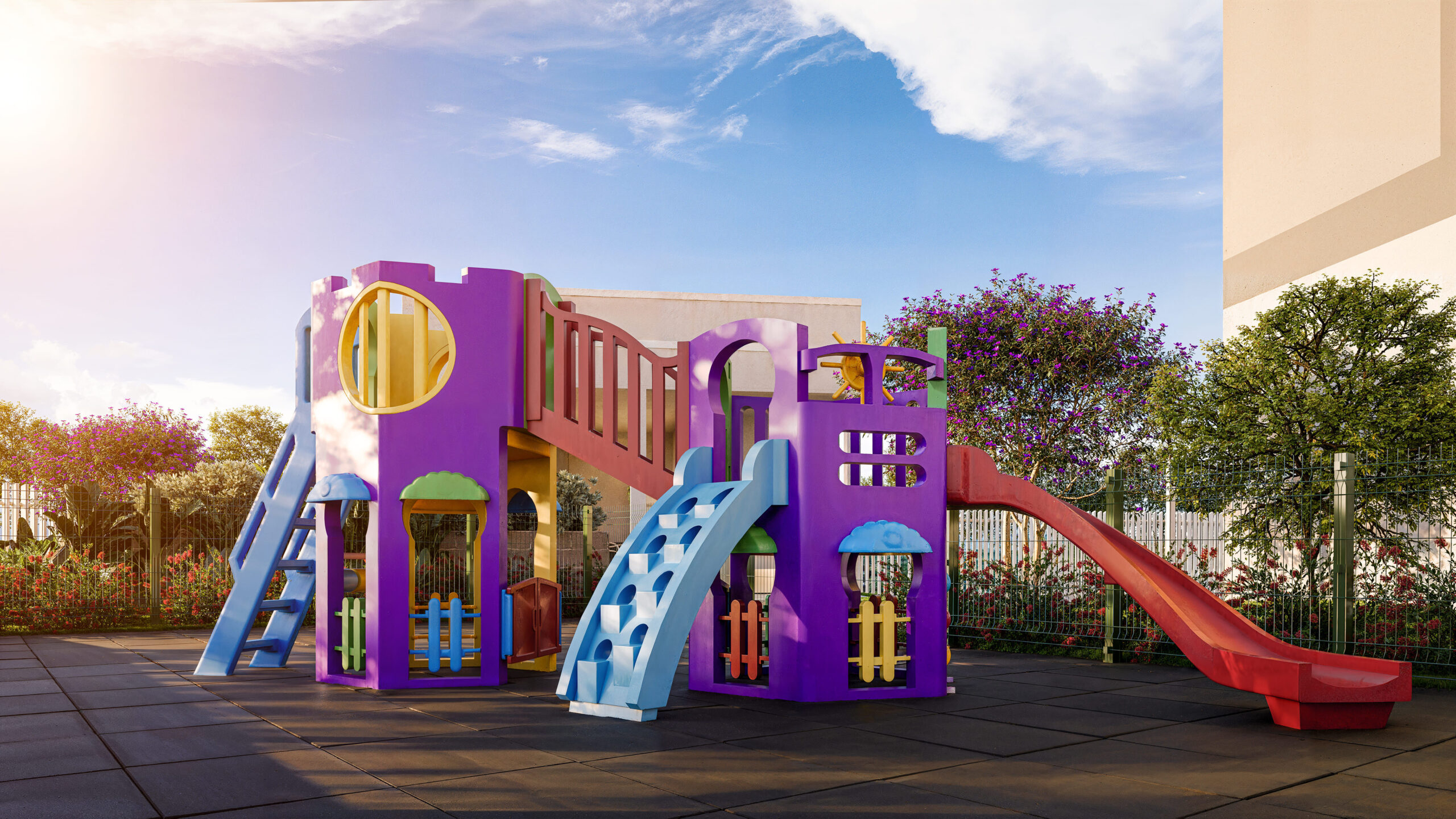 O residencial oferece apartamentos de 2 quartos e lazer equipado com playground, churrasqueira, praça bem-estar, praça das flores, espaço fogo, redário e bicicletário.