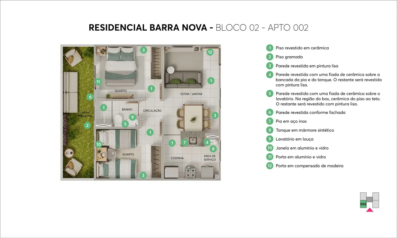 O Residencial Barra Nova tem unidades com 2 quartos, opções de área privativa e varanda para você viver o melhor pôr do sol de Natal, dentro do seu apê. Viva o sonho do seu novo apê MRV cercado por uma área de lazer incrível com piscinas, salão de festas, espaço gourmet, quadra recreativa, pet place, playground e muito mais.