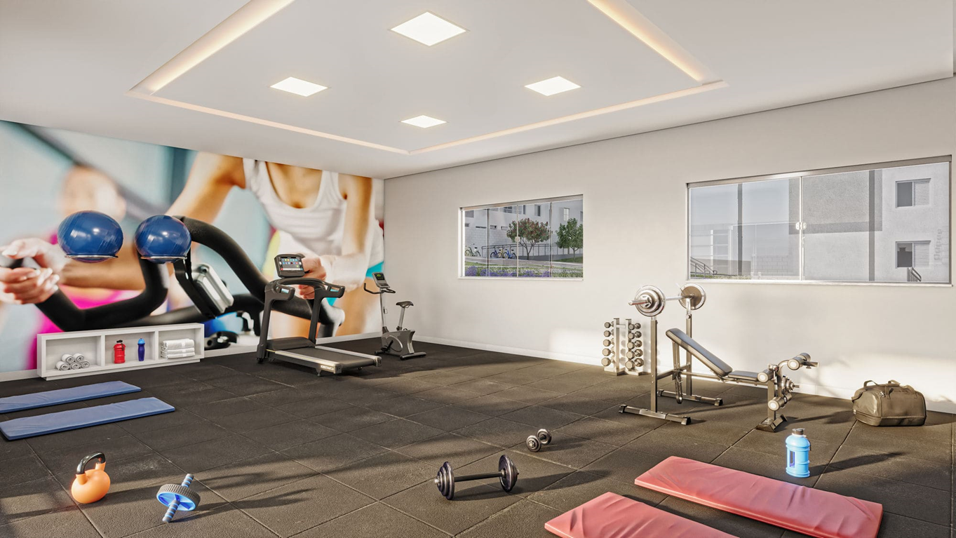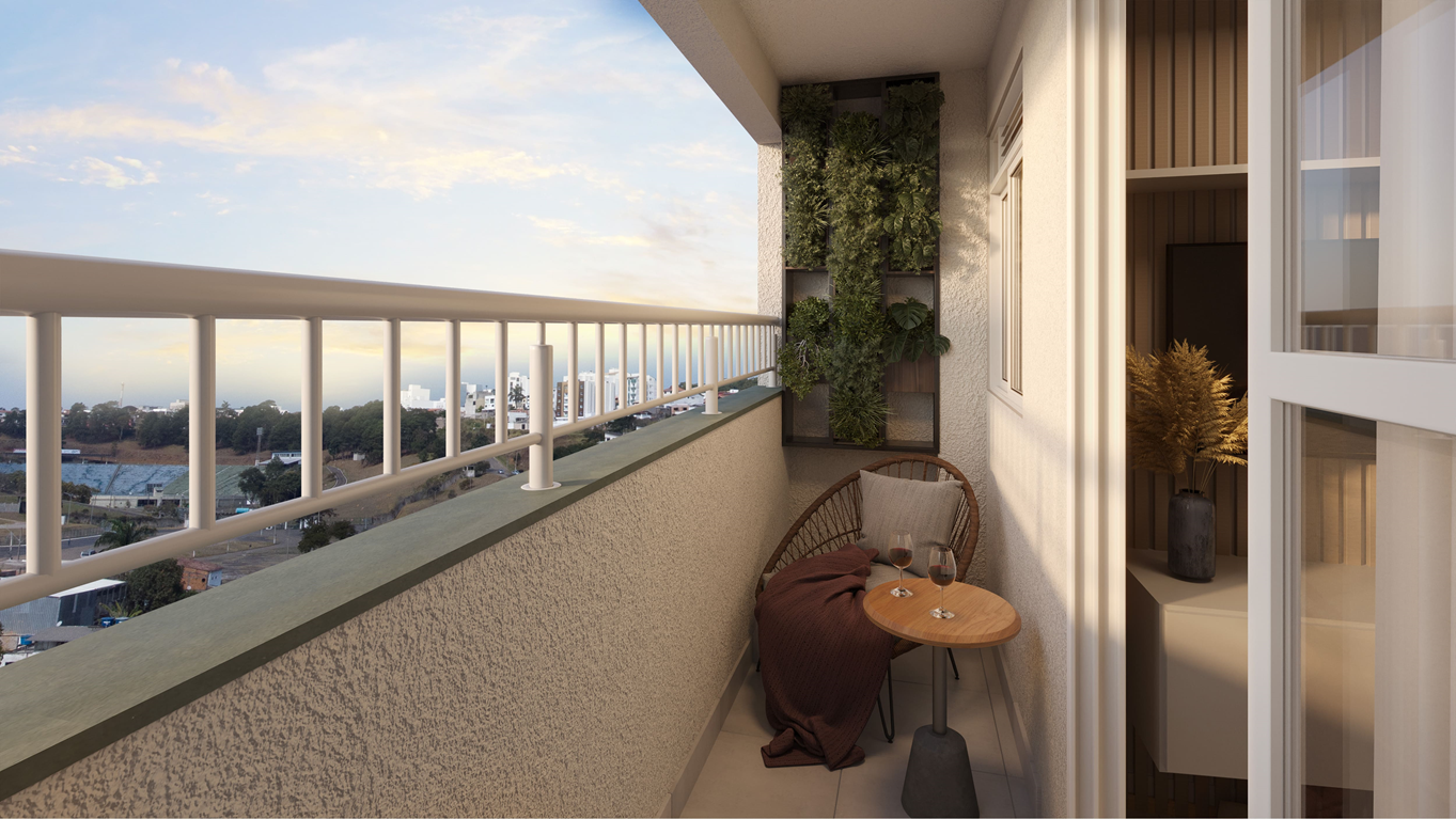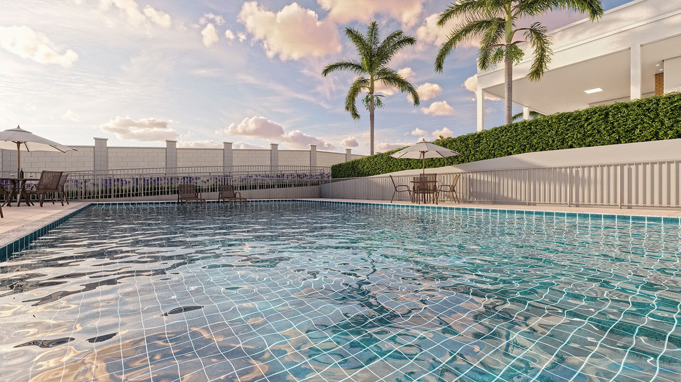 São apartamentos de dois quartos com varanda, opção de suíte e área privativa com acabamentos diferenciados e área de lazer completa com piscinas adulto e infantil, playground, salão de festas, pet place, área gourmet, espaço kids e academia para quem não abre mão de estar sempre se exercitando.