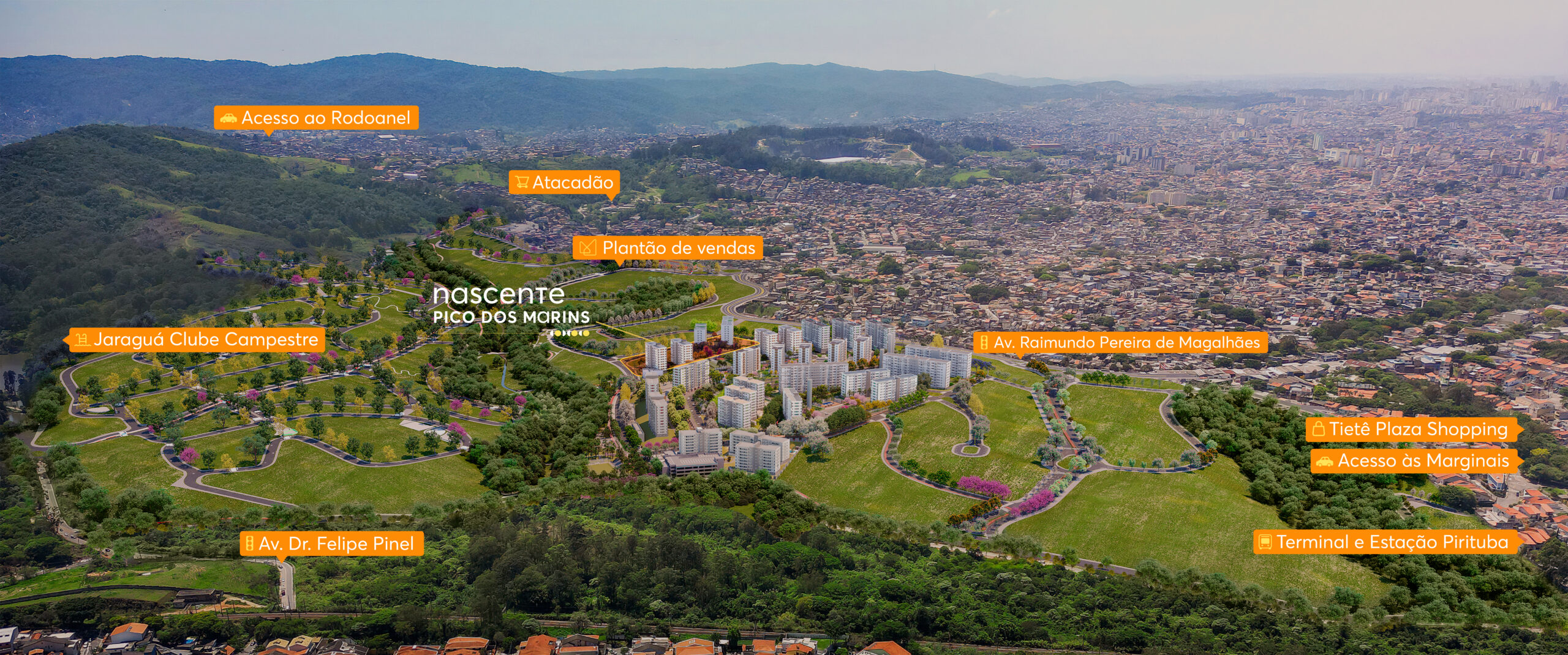 Criado para integrar a Cidade Sete Sóis Pirituba e inspirado no conceito de cidades inteligentes, o Nascente Pico dos Marins é o novo lançamento do bairro planejado da MRV que chega para consolidar o nosso investimento em boas opções de moradia em uma das melhores localizações de São Paulo.