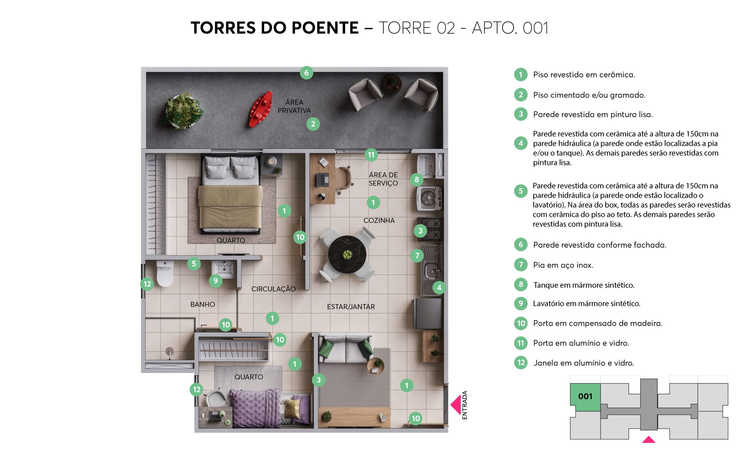 São apartamentos de 2 quartos com opções de varanda a partir do 1º pavimento e área privativa para o térreo. O condomínio residencial também oferece espaços de puro lazer completo pra você com piscinas, espaço gourmet, salão de festas e muito mais espaços para você viver dias incríveis ao lado de quem você ama.
