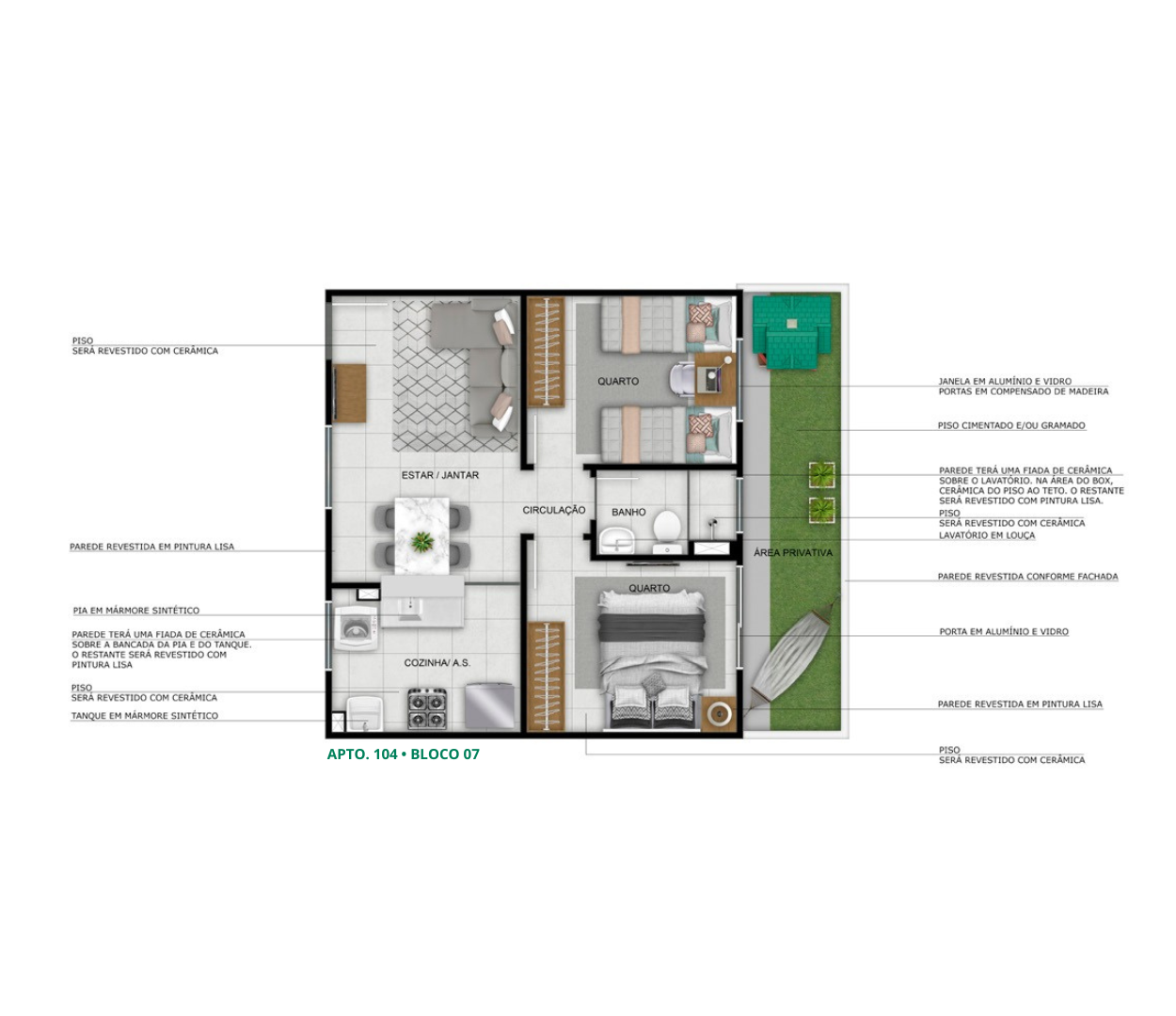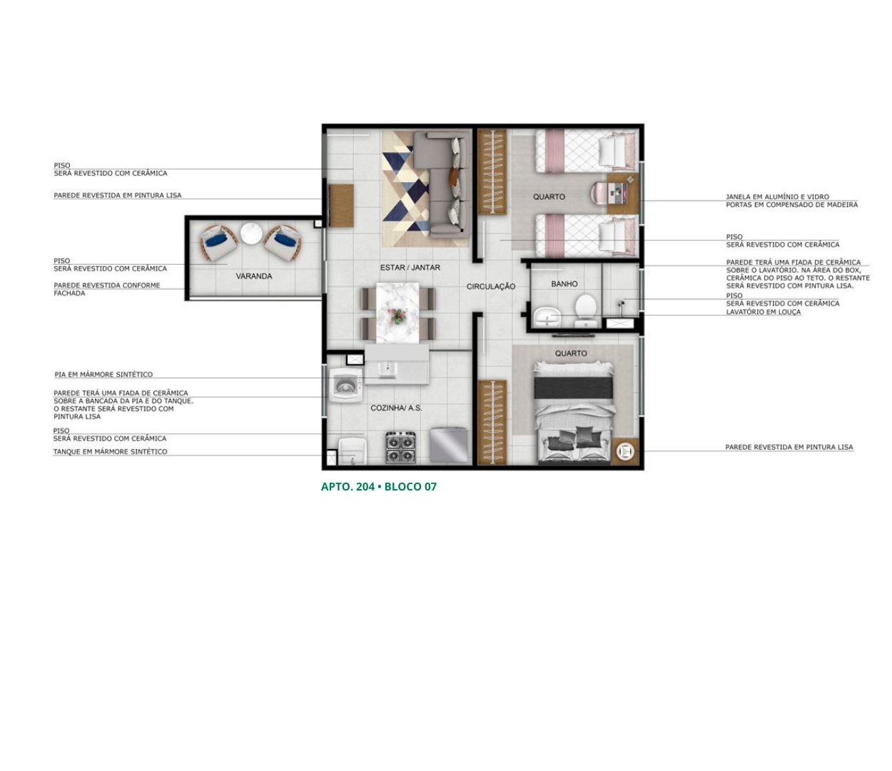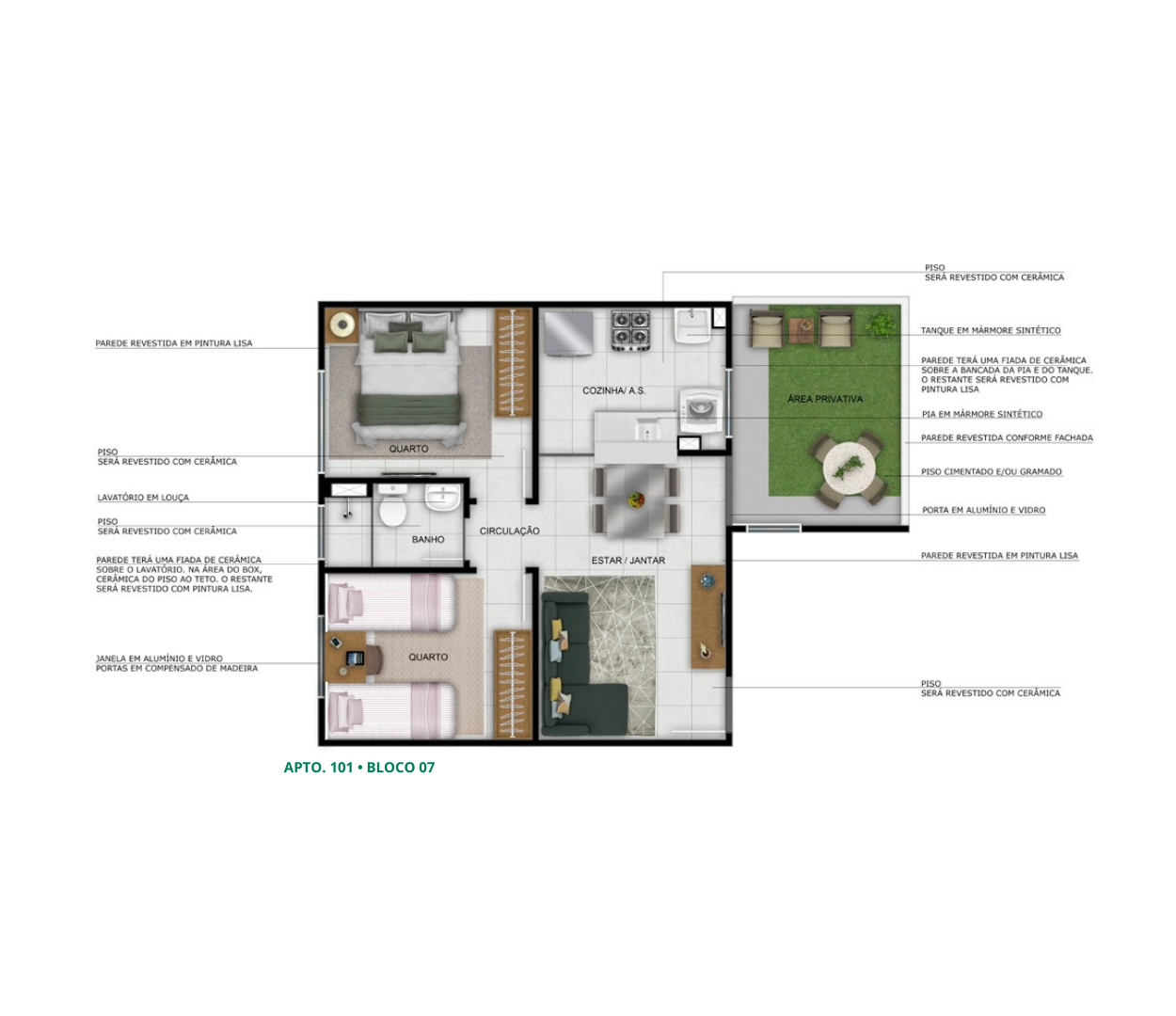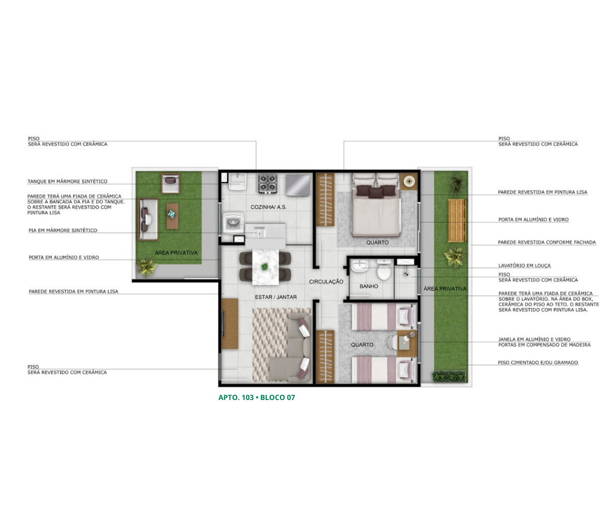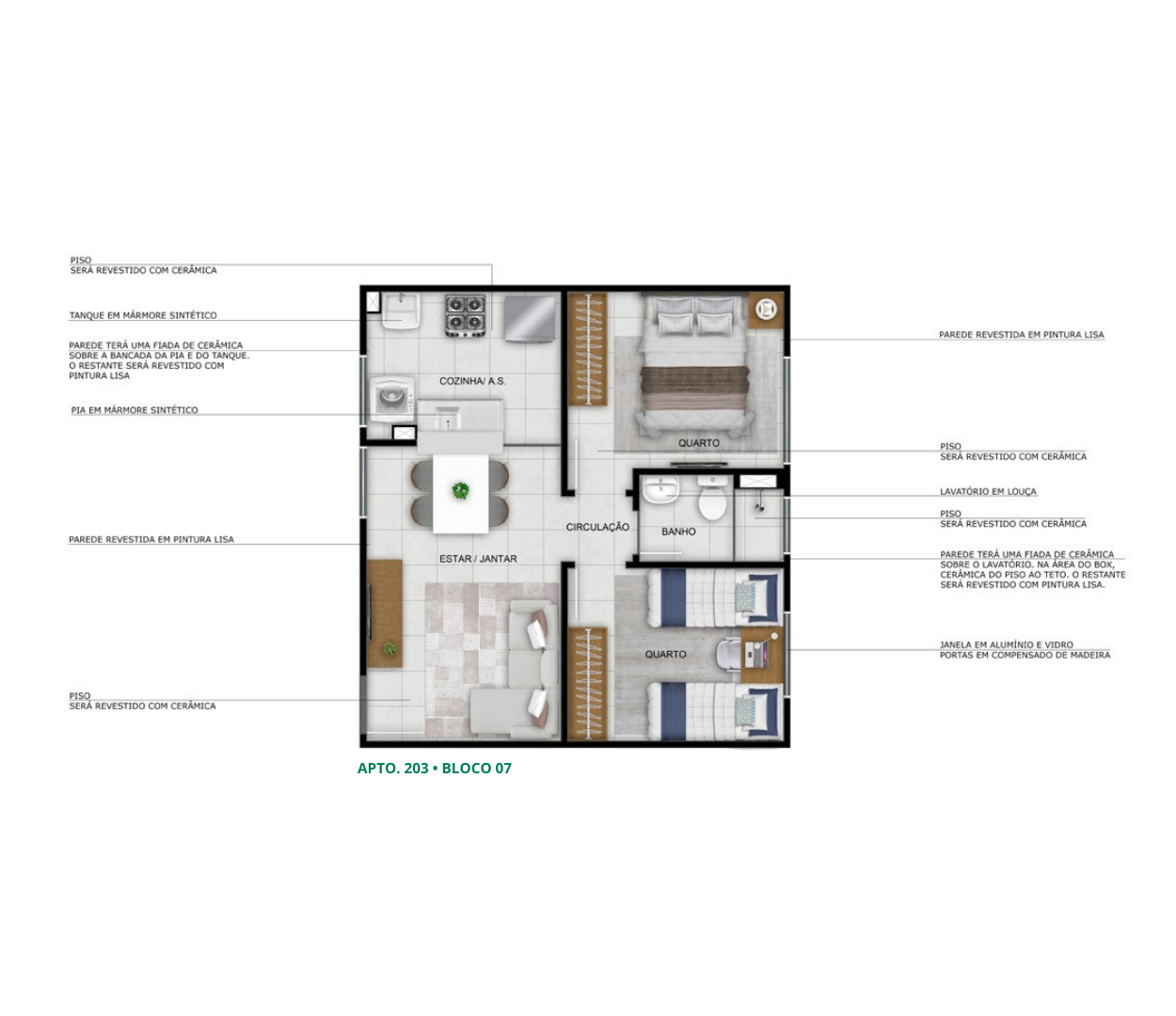 - Revestimento parcial das áreas molhadas